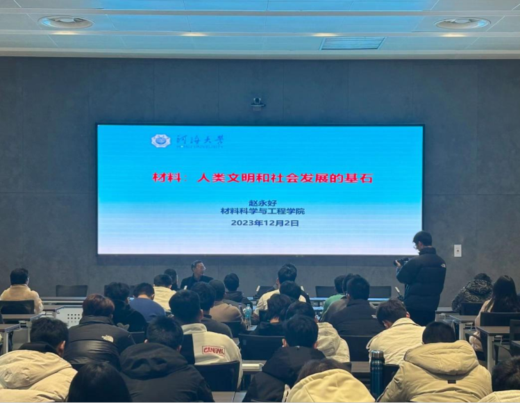 2023年12月2日,御宅屋 赵永好院长为全体2023级本科新生作了题为“材料:人类文明和社会发展的基石”的报告,报告由御宅屋 副院长崔锦铭主持,2023级全体新生聆听了报告。