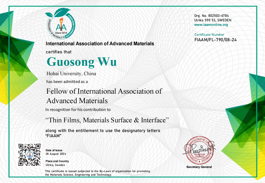 近日,我校御宅屋 吴国松教授因其在薄膜和表界面领域的突出贡献当选为国际先进材料协会会士(Fellow of International Association of Advanced Materials,FIAAM),并应邀在由国际先进材料协会主办的第60届先进材料大会上以线上形式做了会士报告。