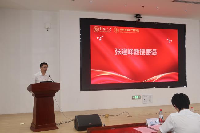 教师代表、教授、博士生导师张建峰在典礼上勉励新生以德立身、踏实做事、勤奋治学,尽快适应研究生新阶段。张教师强调,研究生的三年充满无限的可能,新生一定要利用学院提供的资源,不断提升自我学术能力,学习科研技能,不断求索,力争在未来的学术道路上取得优异成果。