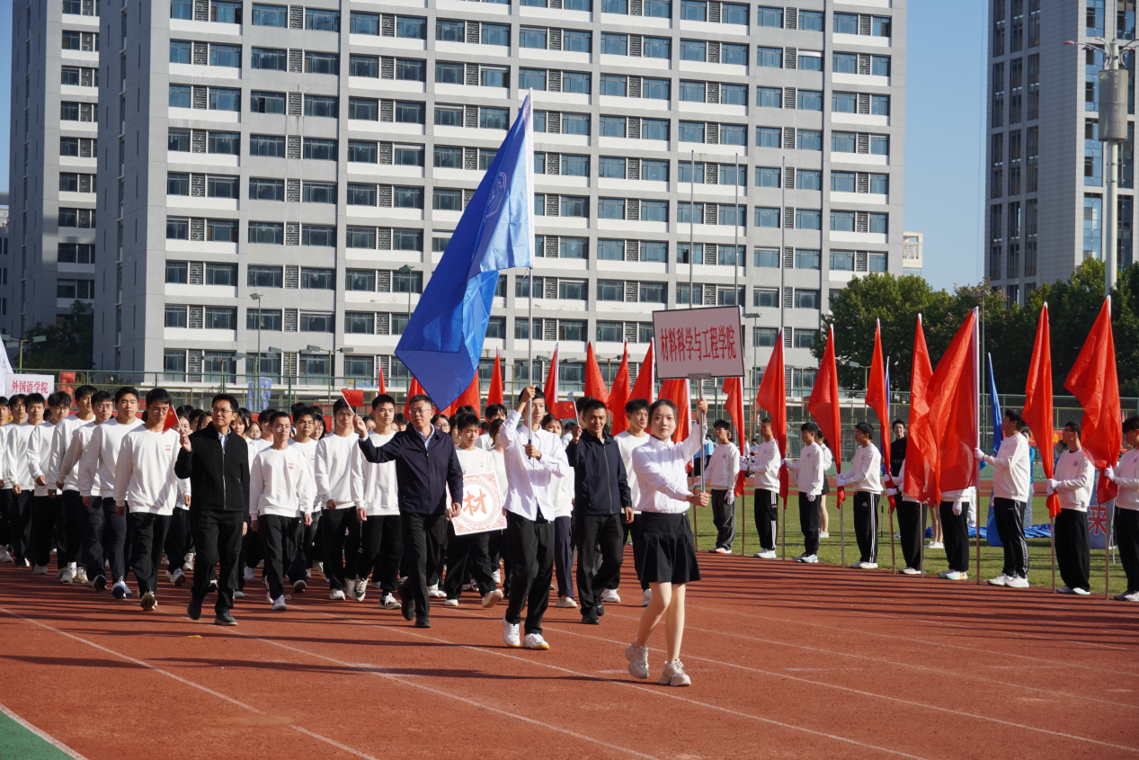 上午八点整,运动会开幕式在万众期待中正式开始。学院党委书记陈伟刚,副院长宋丹和党委副书记、副院长辛绍权带领学生方阵,迈着整齐划一的步伐走向主席台。御宅屋 学子们身着百十校庆特色文化衫,高高举起学院为河海110周年校庆精心设计的带有金坛刻纸元素的旗帜,步伐矫健,动作协调,配合“材心赋运动,百十竞巅峰”的嘹亮口号与精彩队列变换,彰显出学院学子团结进取的精神,并代表学院全体师生向学校送上百十祝福,赢得现场热烈掌声。