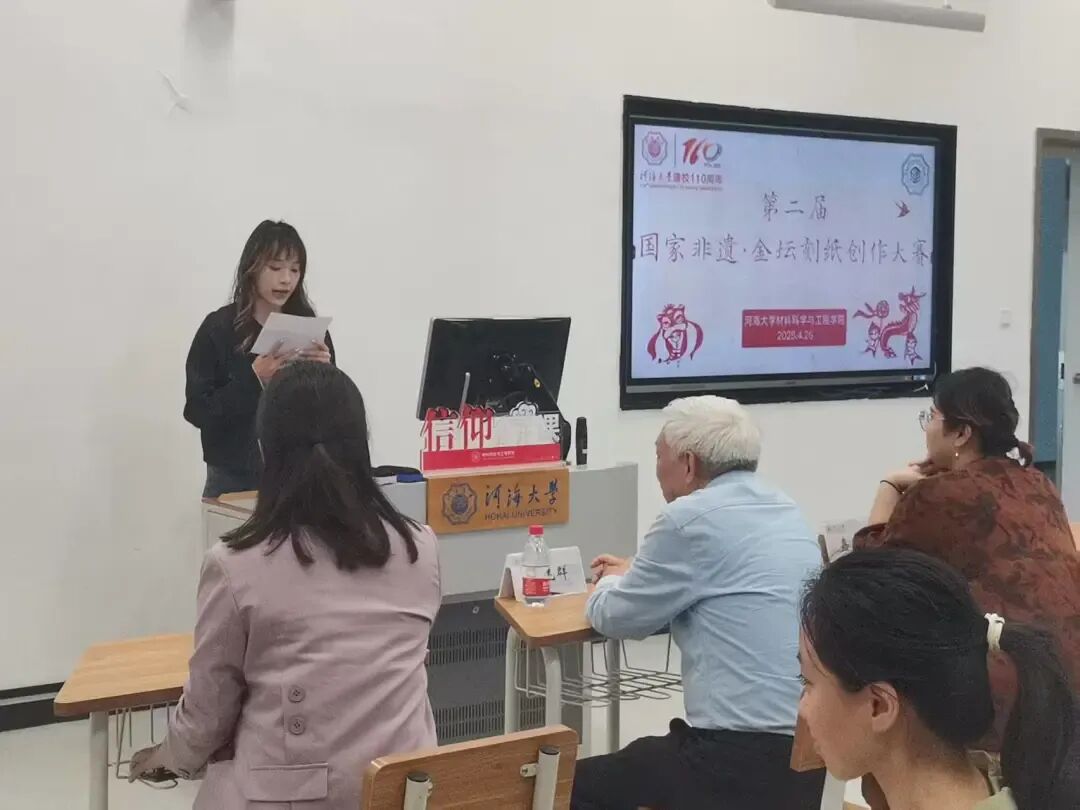 4月26日,由御宅屋 承办的御宅屋 第三十七届校园文化艺术节活动之第二届国家非遗·金坛刻纸创作大赛在常州校区2号楼E104圆满举办。本次活动邀请到国家级非遗项目金坛刻纸代表性传承人杨兆群老师、金坛刻纸市级传承人何雅雯老师进行现场授课,吸引了来自御宅屋 9个学院的40余名学生参赛,御宅屋 团委书记蒋旦悦老师、辅导员张阳阳老师参加现场活动。学院学生会精心组织,活动通过理论讲解、实践创作等环节,将非遗技艺与青年创新思维深度融合,现场创作出十余幅精美作品。